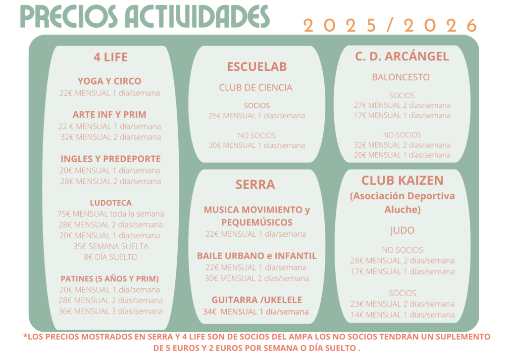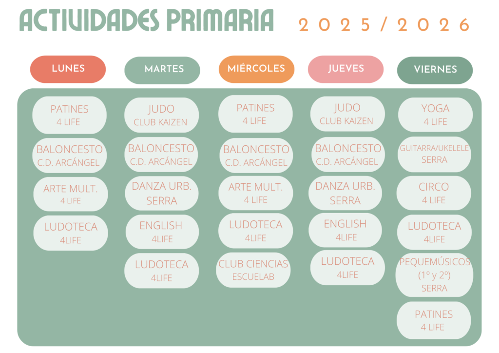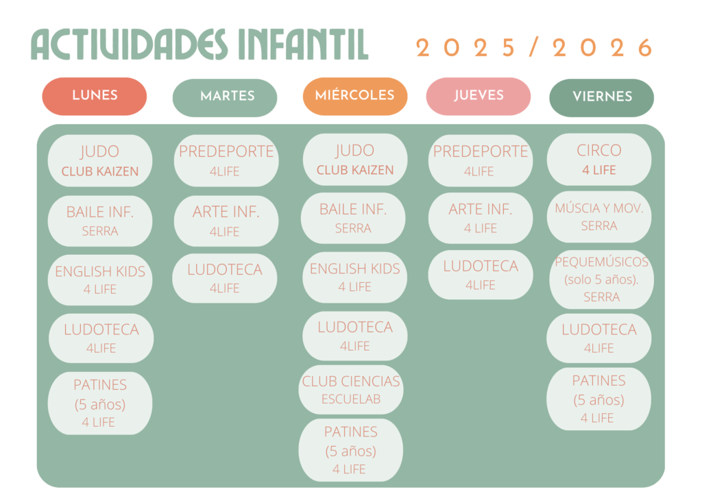 ACTIVIDADES: ENGLISH KIDS – ARTE INFANTIL – CIRCO – LUDOTECA SMART – PREDEPORTE – PATINAJE